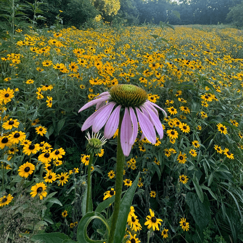 A meadow is a perfect way to create a low-maintenance, functional, beautiful, and beneficial replacement for an area of lawn. It can be done on various scales, from a small plot to a large multi-acre field. After two seasons of maintenance and management, the requirements for management drop off to one or two visits per season.